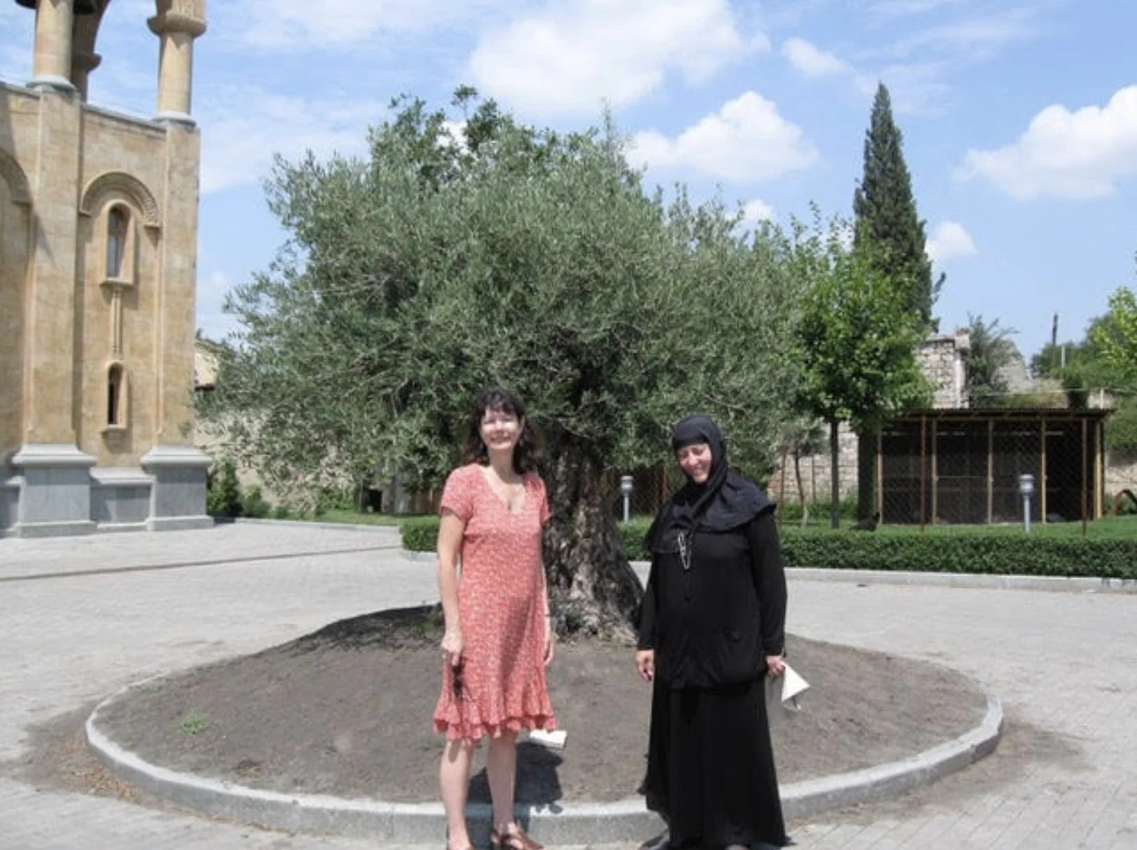 Marusya Chavchavadze and Mother Tekla with the first olive tree on the grounds
