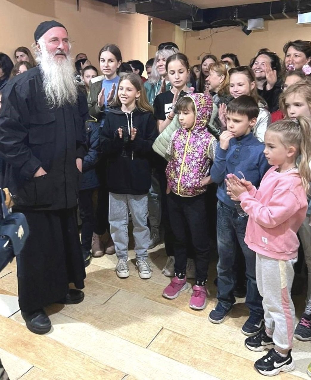 We decided it would be special to put these people together—people who left Ukraine (Mariupol, Kharkiv, Kiev) and to take them to Nikozi to the place in 2008 struggling with war and for them it would be healing to meet with Metropolitan Isaia who is a very special figure. It was a very emotional event.
